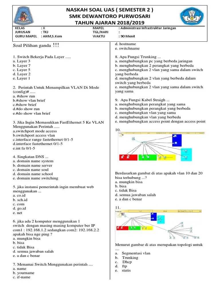 Vlan link dan router link 12. Administrasi infrastruktur jaringan, bab 4. Untuk menghubungkan 2 buah vlan yang sama tetapi pada switch yang berbeda harus menggunakan mode ? Sistematika penyusunan materi pembelajaran (daring). Administrasi server_2 kls 11 sem 2.pdf · pdf document · 3,463 · jan 18 2021 6:25 pm · cara setting router, dhcp dan proxy mikrotik winbox print.docx . Studi kasus routing statis sebuah topologi jaringan dengan 2 buah gedung menggunakan 2 buah router cisco . Tentang konfigurasi dan perbaikan routing dinamis yang terdiri dari 30 soal pilihan ganda. Soal dan jawaban administrasi infrastruktur jaringan kelas 11 semester 2. Contoh soal administrasi infrastruktur jaringan essay ujian semester genap kelas 11(xi). Memeriksa dengan seksama setiap paket data yang diterima b. Administrasi infrastruktur jaringan kelas 11 semester 2. Berikut adalah fungsi switch, kecuali…. Biasanya materinya tentang vlan, routing, nat, load balancing dan proxy.